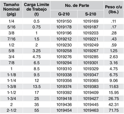 • Todos los grilletes 209 y 210 pueden cumplen los requerimientos Charpy a 42