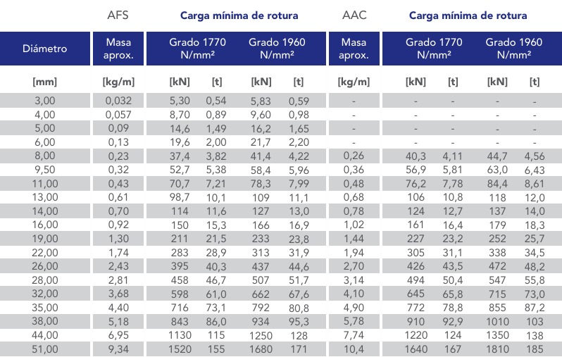 Cable con excelente resistencia a la abrasión, provista por la mayor sección de sus alambres exteriores,